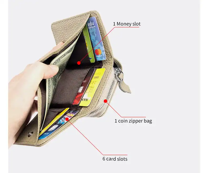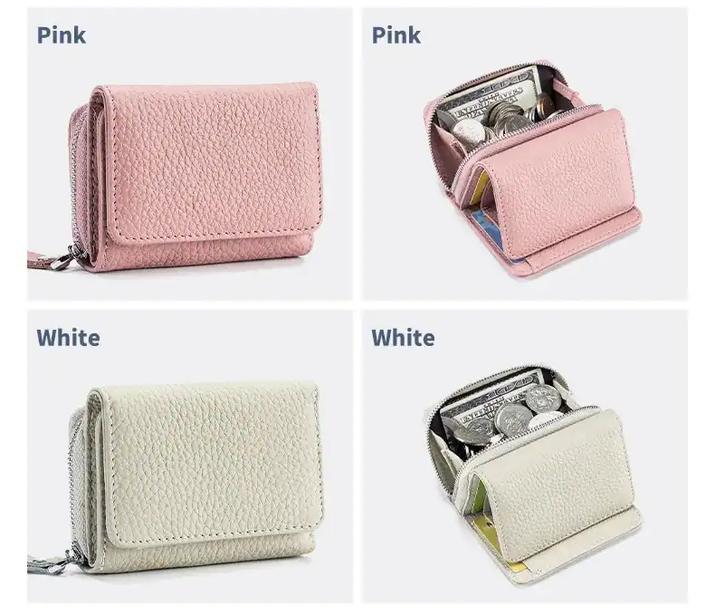 Say goodbye to digging through your bag—our wallet features two secure zippered coin pockets to keep every penny right where it belongs.