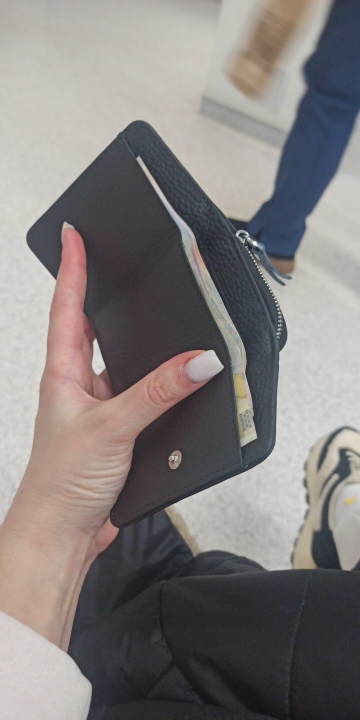 The goods arrived quickly. The wallet is made very carefully, the seams are even, the accessories are of high quality, there is no extraneous smell. It is light, comfortable and fits in any bag. One note - the small thing in the small section falls out for the side valves. The product fully complies with the stated specifications. I recommend the seller and the product.