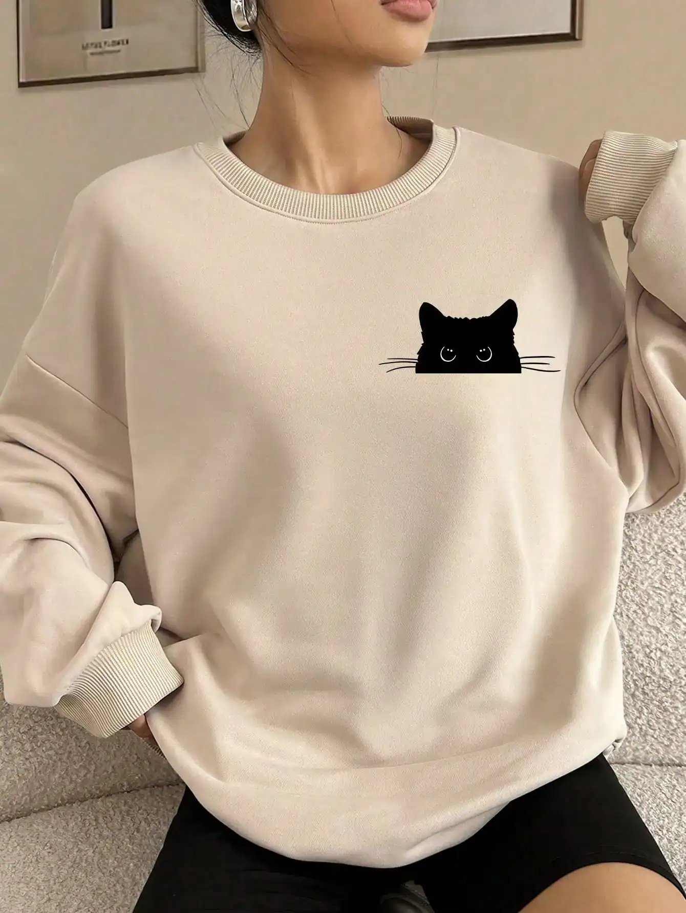 Meet the sweater that’s the cat’s meow! Our Peeking Cat Sweater combines ultimate comfort with a delightfully mischievous design. Featuring a minimalist cat graphic that’s peeking out for surprise cuddles, this piece is your new go-to for adding a dose of playful charm to any outfit.