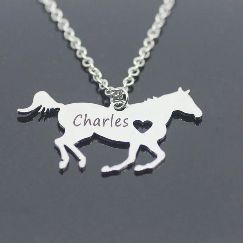 Are you looking to win her heart? Let us help you with this Personalized horse necklace. All of our jewellery is created with meticulous care and attention to detail. Crafted with fine, durable materials designed to provide luxurious comfort and to stand the test of time; our skilled artisans apply time-honoured techniques to create this personalized horse necklace. Simply give us the name of your beloved and we will customize it to your order.