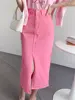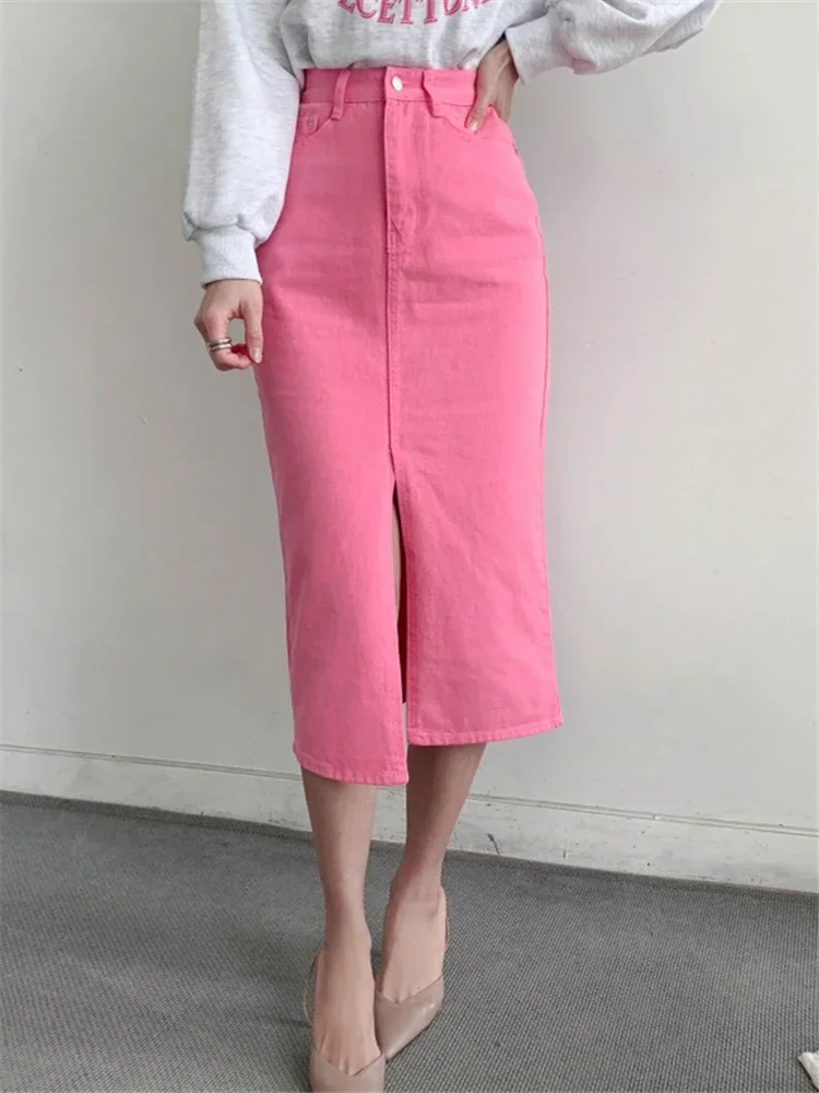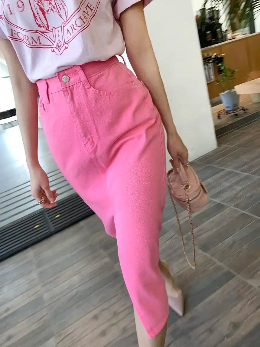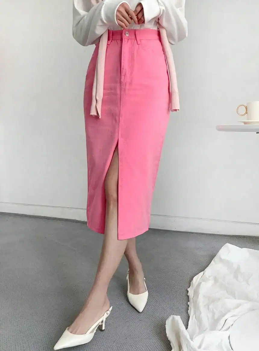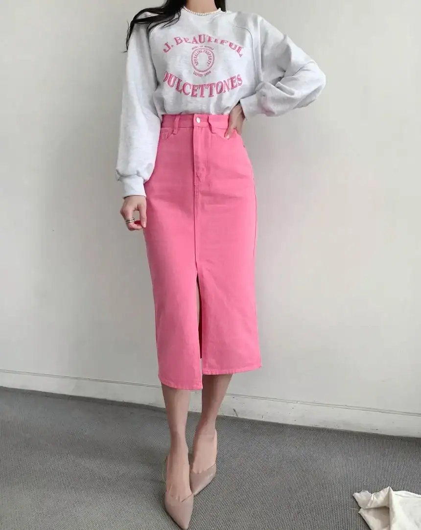 The soft pink shade adds a sweet, romantic touch to your outfit, making it a standout piece in your wardrobe. Unlike traditional blue denim, this skirt offers a fresh, youthful vibe that’s perfect for spring, summer, or even layered looks in fall.