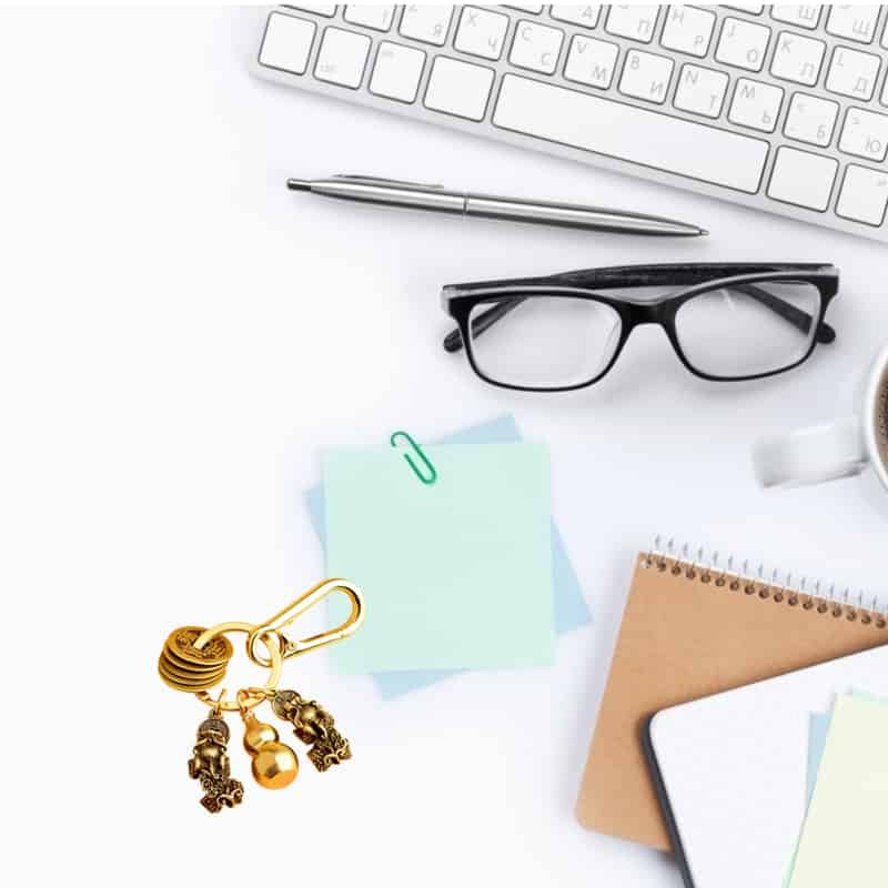 If you want to find a lucky item to always carry with you, don’t ignore our Double Pixiu keychain. The product is made of preferred brass materials, good performance, harm-free, durable, and practical. This keychain includes double talented Pixiu, zodiac gourd, and five emperor copper coins. According to the legend, it will bring you luck, financial advantage, and exorcise evil spirits. Most especially, gives you the energy to keep you healthy and longevity. It has a classic and exquisite detail design, resents a beautiful, elegant, charming appearance. This keychain is an excellent decorative item and can bring an antique atmosphere. Buy right now!
