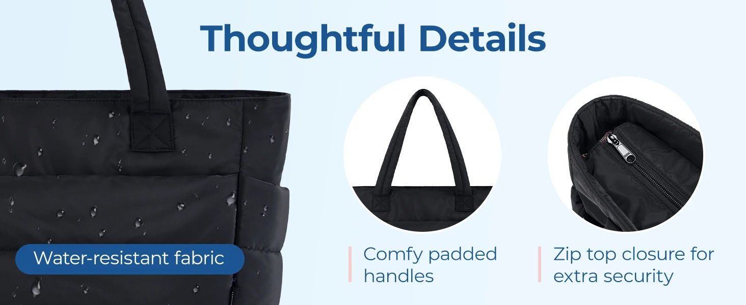 Designed for women who want fashion without sacrificing function, this quilted puffy tote blends a chic, modern silhouette with ultra‑lightweight durability. Crafted from premium Taslan fabric and weighing just 0.99 lbs, it feels cloud‑soft yet stands up to daily wear — from office commutes to weekend adventures.