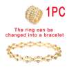 It is a Beautiful Ring at First Sight, But Also can be transformed to a Bracelet After Unfold. This ring can be stretched and compression. Stretching can be worn as a bracelet. It can be worn as a ring. Wearing a chain can be worn as a necklace.