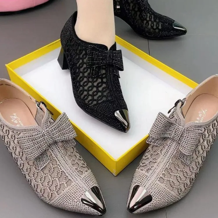 Wearing this Rhinestone Hollow Chunky Heel Shoes makes you look curvier, hotter, sexier and feminine.