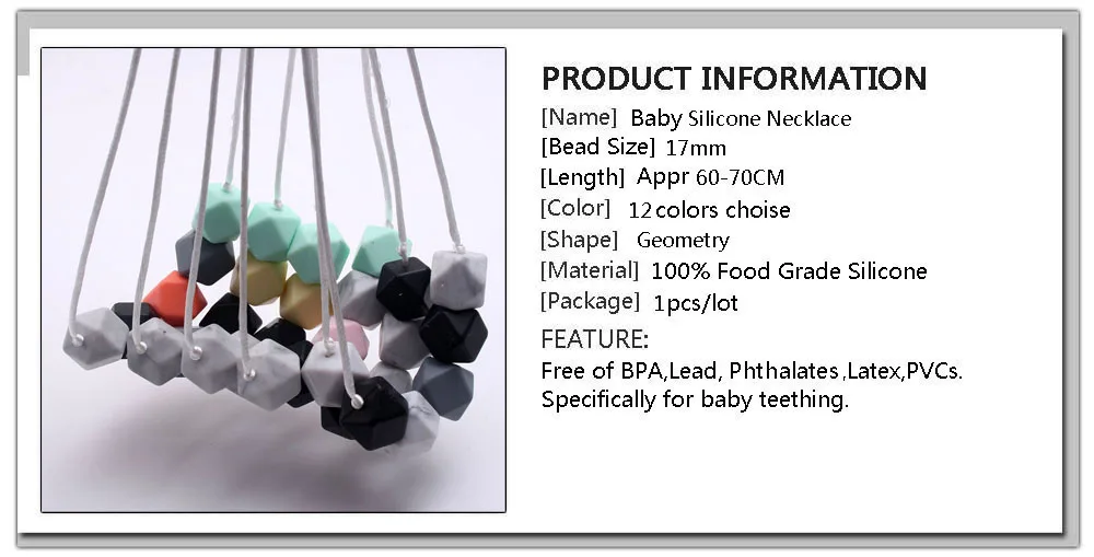A teething baby? Then you need this great baby silicone beads; made from washable 100% highest quality food grade silicone (similar to a baby pacifier), when your baby outgrows this teether, he/she will like it.