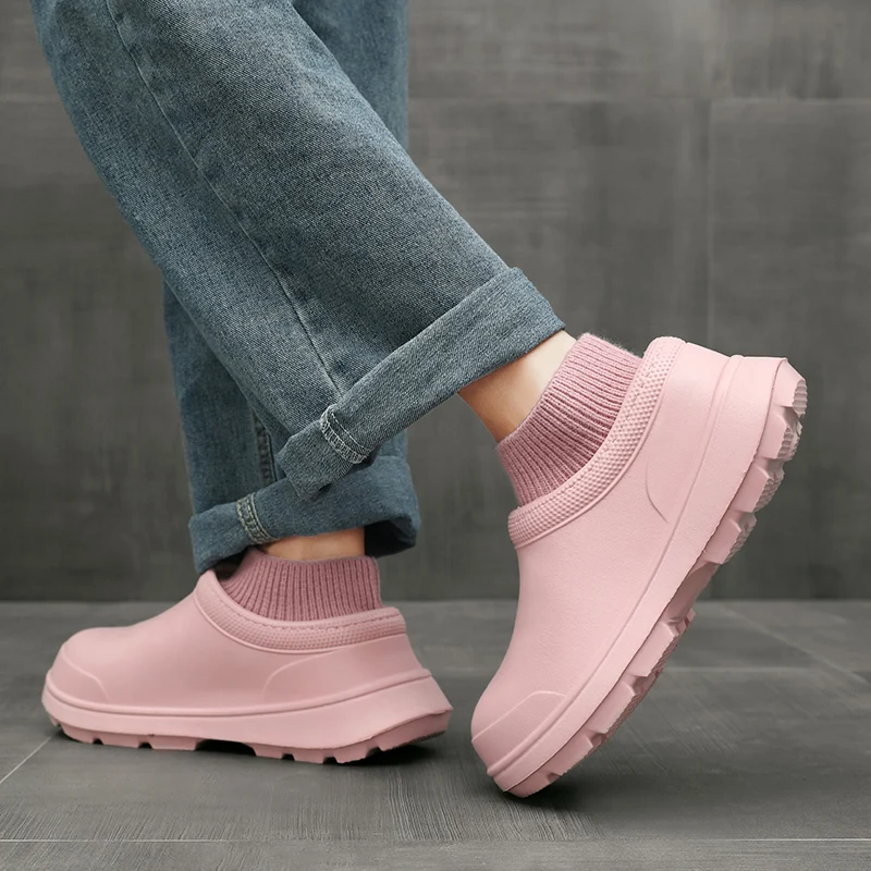 A smooth waterproof shell shields your feet from splashes, mud, and unexpected spills, while the soft knit sock-style collar wraps gently around your ankle for a snug, cozy fit. Lightweight yet impressively durable, Slip On Garden Clogs deliver cloud-like comfort without slowing you down.