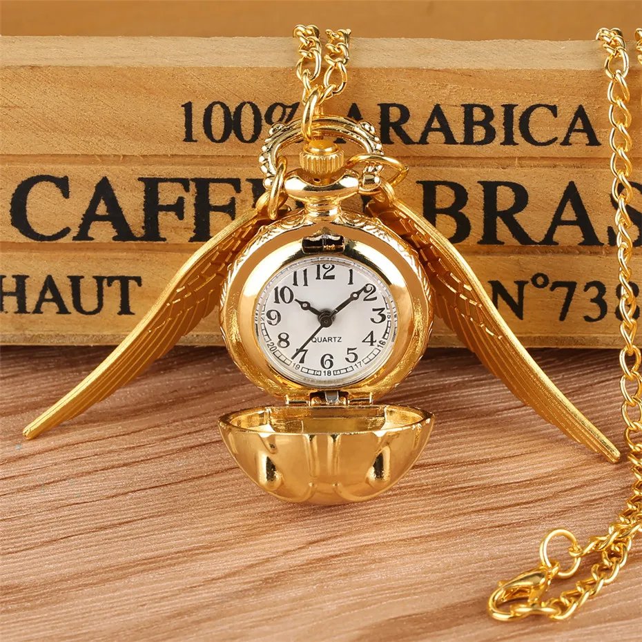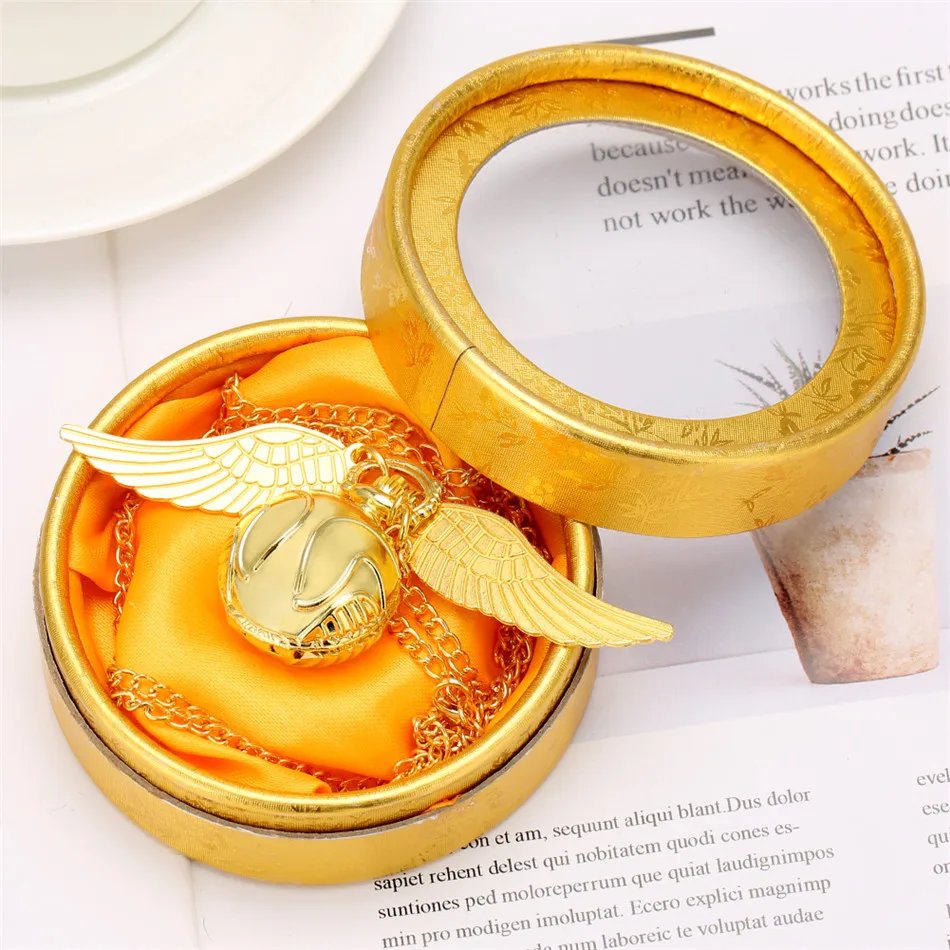 • The Snitch pendant cleverly conceals a functional pocket watch. Open the delicate wings to reveal a timepiece that adds both style and practicality.