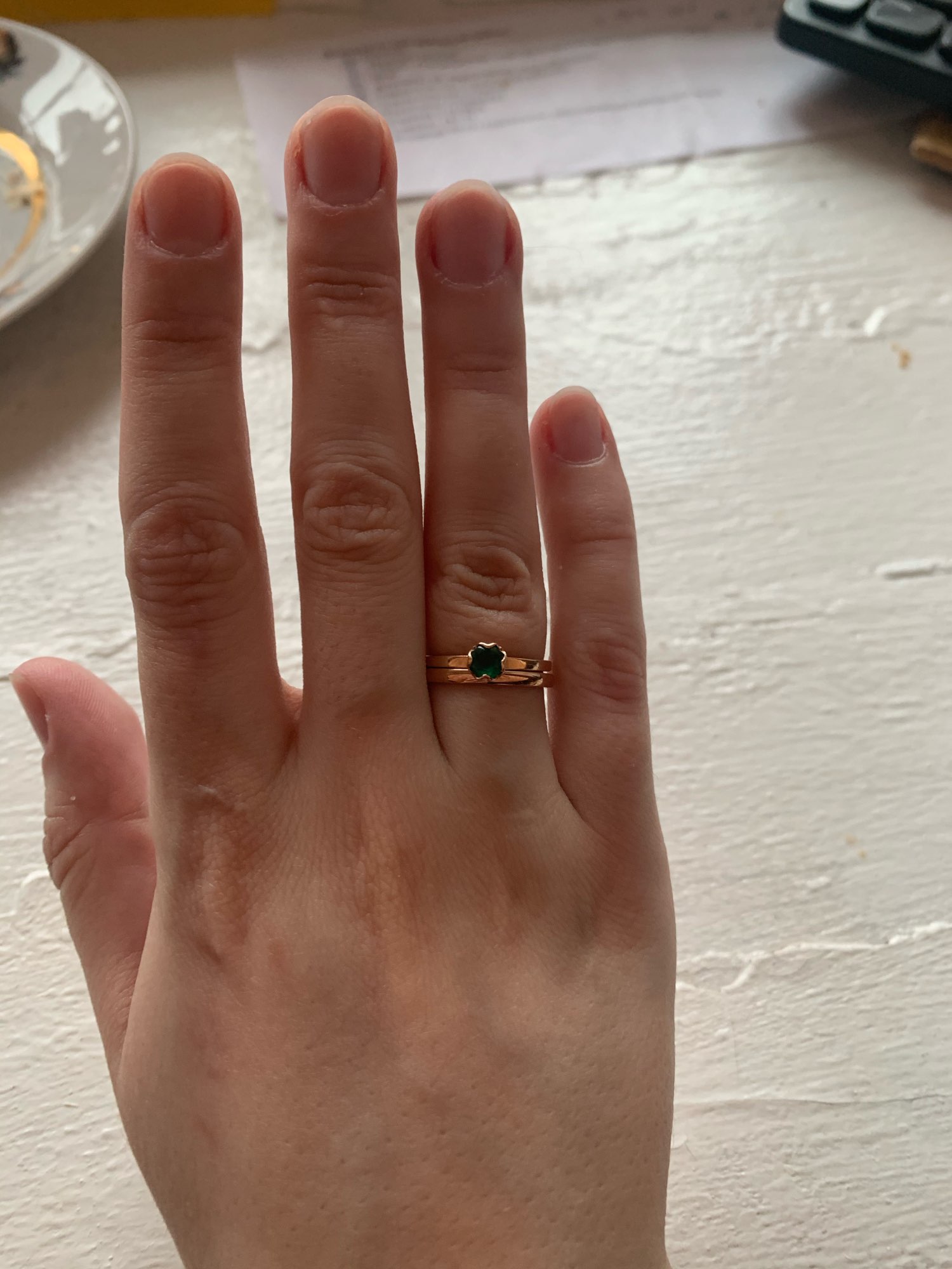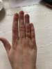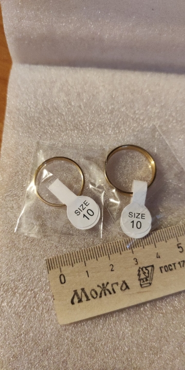 The ring came for 10 (!!!) days. This is my fastest package from AliExpress. Now about the ring: ordered 5 size 2mm (for rose gold) at its 15-15,5 size. It came perfectly. On a thin handle looks very gentle. And with my wedding ring looks very nice and does not interfere with anything. This store ordered 2 rings, came together in one bag, I recommend to buy. Seller 5 points :)