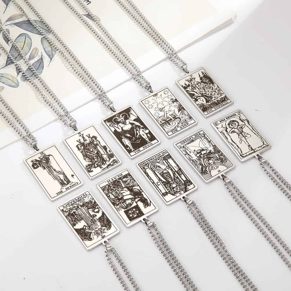 Are you someone who loves watching tarot and believes in its power? Then surely you cannot ignore this Tarot pendant necklace. The product is made of 100% stainless steel, don’t worry about dullness, and safe for skin. This unique necklace showcases the Major Arcana, the face cards of the tarot deck. The pendant is beautifully engraved with great detail from the sun, the moon, the star, the world, the magician to the wheel of fortune. Each card has unique symbolism that can reflect meaning in your life. Each design is elegant yet stylish enough for your stacking needs. This is also a meaningful gift for your relatives and friends. Buy it now!