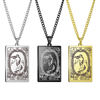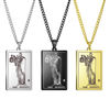 The parcel came quickly to Canada. The necklace has a thick, strong chain and the backside is polished. The pendant has some weight, and the engraving is detailed although slightly rough to the touch. Overall a good necklace for a good price. I recommend to buy. The necklace can be worn by both male and female.