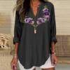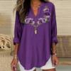 Long-sleeved shirt, V-neck, purple floral print, stylish basics and casual wear.