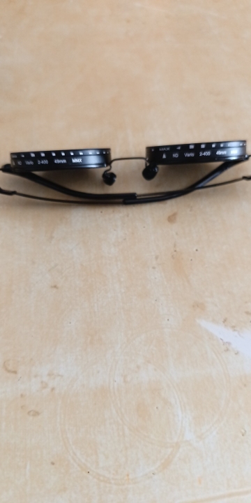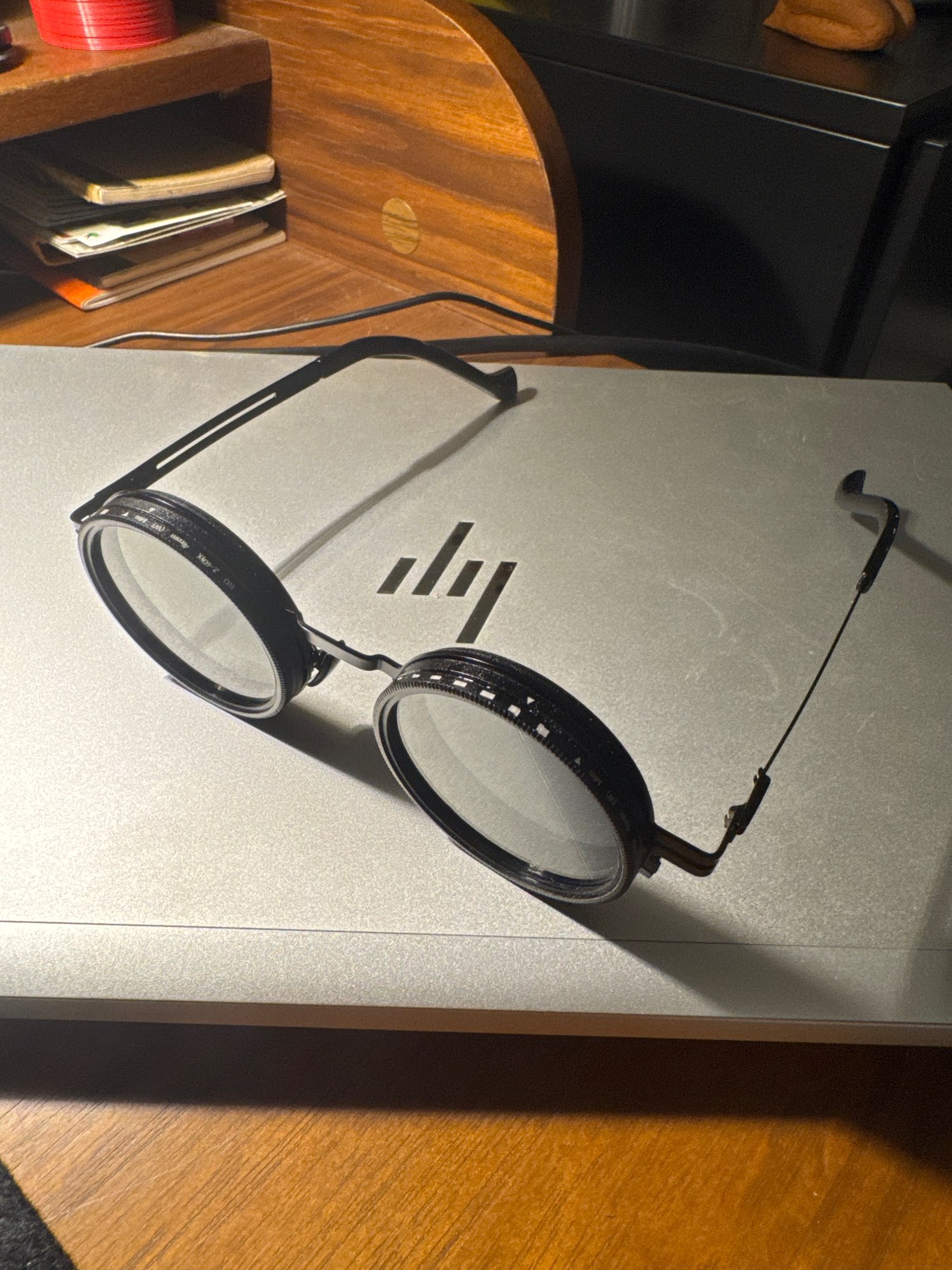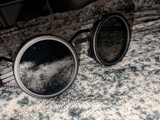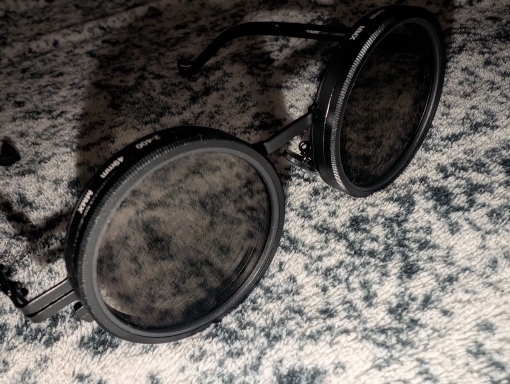 Theee are legit just a set of frames with 49mm varo nd camera lens filters in them. After finding that out, i got some of my macro lens adapters out and some other stackable filters for funzies, and these are absolutely my favourite pair of sunglasses bar-none. I use them even when working on electronics now instead of using a microscope. My ray-bans are sitting on the shelf now, never to be touched again.