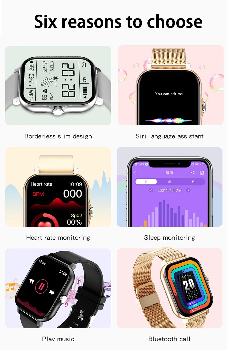 Are you looking for a handy watch that can be integrated with your phone? Let’s use our Touch screen smartwatch. The product has a high-definition display, smooth surface. The detachable wristband is made of high-quality material, durable and skin-friendly, comfortable to wear. This smartwatch will automatically monitor and record your heart rate, blood pressure, blood oxygen, and sleep data to help you adjust yourself and make yourself healthier. All of this data can be synced to your smartphone. Moreover, after connecting the mobile phone, it will provide a simultaneous display of incoming calls, text messages, and social APP notifications to remind you of important information. This is the perfect gift for your female loved ones. Buy it now!
