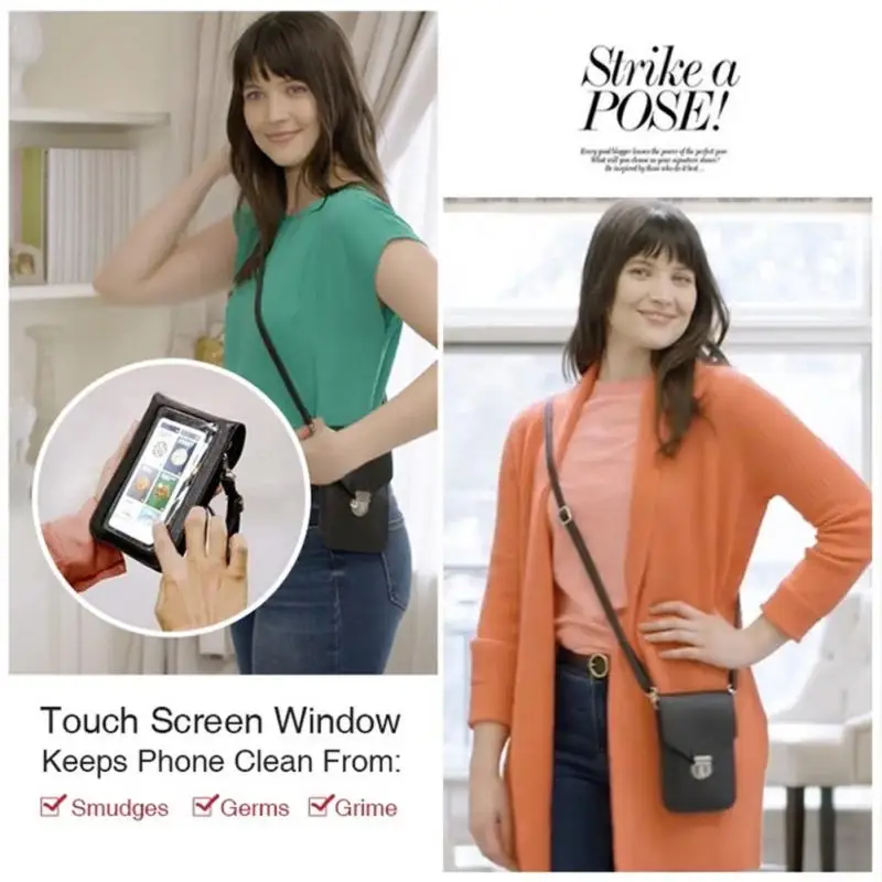 The purse came well packed, strap apart from the handbag, tied itself :). There is a screen for the phone. In the purse two compartments, one for the phone, the second can be used for money, but I put two phones, to work the most, because one phone is personal and the other working. Closes on a metal clasp. The quality is excellent, the material without a bad smell.