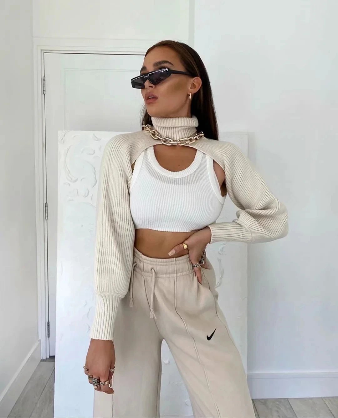 Winter is coming, do you want to try a new fashion style? Introducing our special Turtleneck Sweater Sleeve Top, this is a brand new style that you cannot miss. This Turtleneck Sweater Sleeve Top only has sleeves and collars, you can combine it with a crop-top or a two-wire coat, it will create a very seductive style for the girls who still keep the neck warm. Not only for yourself, but you can also buy it as a gift for your best friend and walk the streets together. With this sweater, you will attract everyone’s eyes and become the highlight on the street. Don’t hesitate and Buy it now!