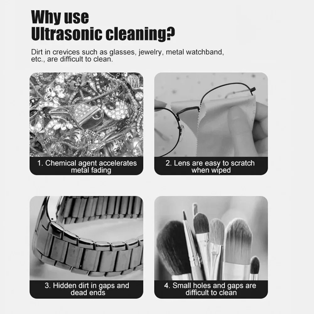 Designed with convenience and efficiency in mind, the Portable Ultrasonic Cleaner is lightweight and easy to use, making it perfect for travel or home use. Simply add water, place your items in the cleaning chamber, and let the ultrasonic waves work their magic in just minutes!