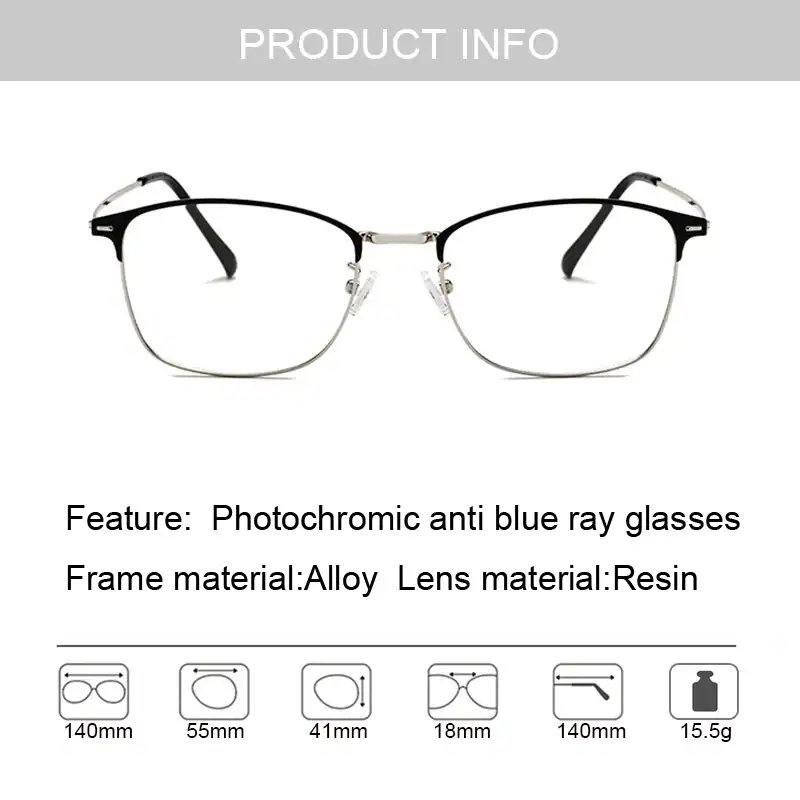 Are you nearsighted and always admired someone who can wear sunglasses when going out on hot days? Don’t be sad; our product will be able to fulfill your needs. The product is made from an ultra-lightweight, slim metal frame equipped with Visioneer’s photochromic transition. These UV protection glasses change in color when exposed to sunlight and shield your eyes from harmful UVA and UVB rays, like sunglasses. Moreover, it also offers protection against radiation and blue light emitted by electronic devices, effectively reduces eye fatigue, and improves sleep at night. This product is perfect for daily use, both indoors and outdoors, and is lightweight and comfortable to wear. Get yours now!