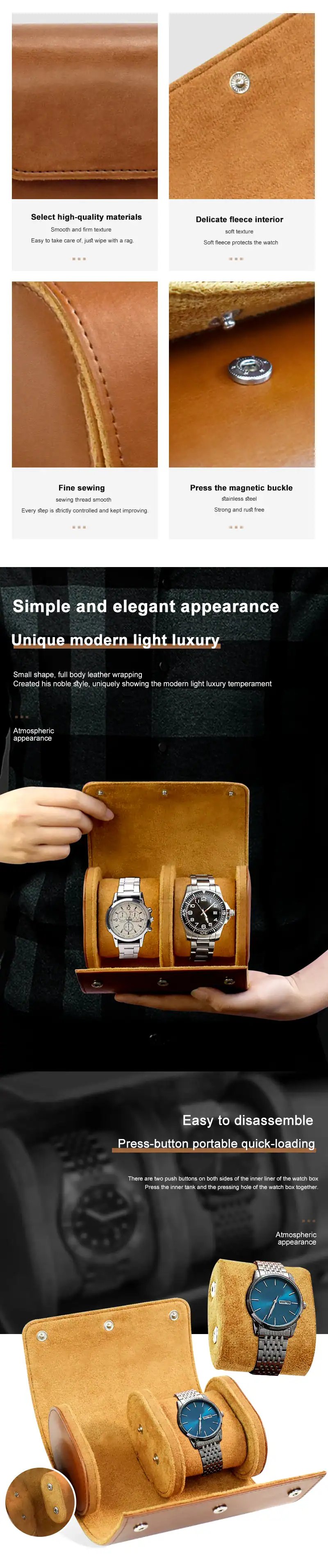Available in multiple sizes (1, 2, 3-watch capacities), this case accommodates watches of all sizes, from slim dress watches to bulky dive watches.