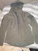 Jacket made of dense fabric-impregnation from the rain, inside fleece. On late autumn, early winter. All seams are neat. A lot of convenient pockets. The hood has a thoughtful system of Velcro and, if desired, can be twisted into a collar. The size matches. A good jacket for a traveler or athlete.