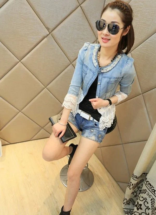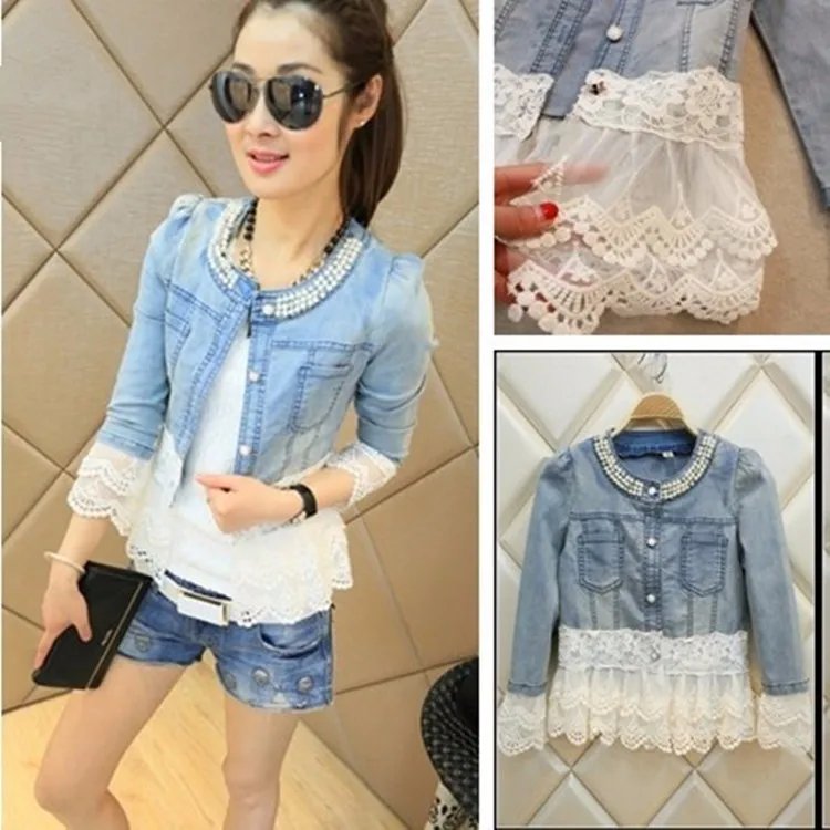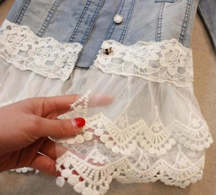 If you are looking for a suitable jacket for work, school, vacation, or office? With our Women white lace jacket, you don’t have to worry about that anymore. First, these jackets are made of cotton, the fabric is soft and comfortable for your skin. Next, it has long sleeves with buttoned cuffs and a sweet lace hem denim jacket for women. Adorned with beautiful lace, very elegant and charming. Moreover, white lace patchwork and classic denim jackets feature fashion and you will never lack a highlight when you wear them. It is a streetwear style, easy to pair with boots, sneakers, shorts, and jeans. It is perfect to wear out to lunch with friends or dress up for date night, this can be worn on many occasions. You will win many compliments when you wear it! Order now!