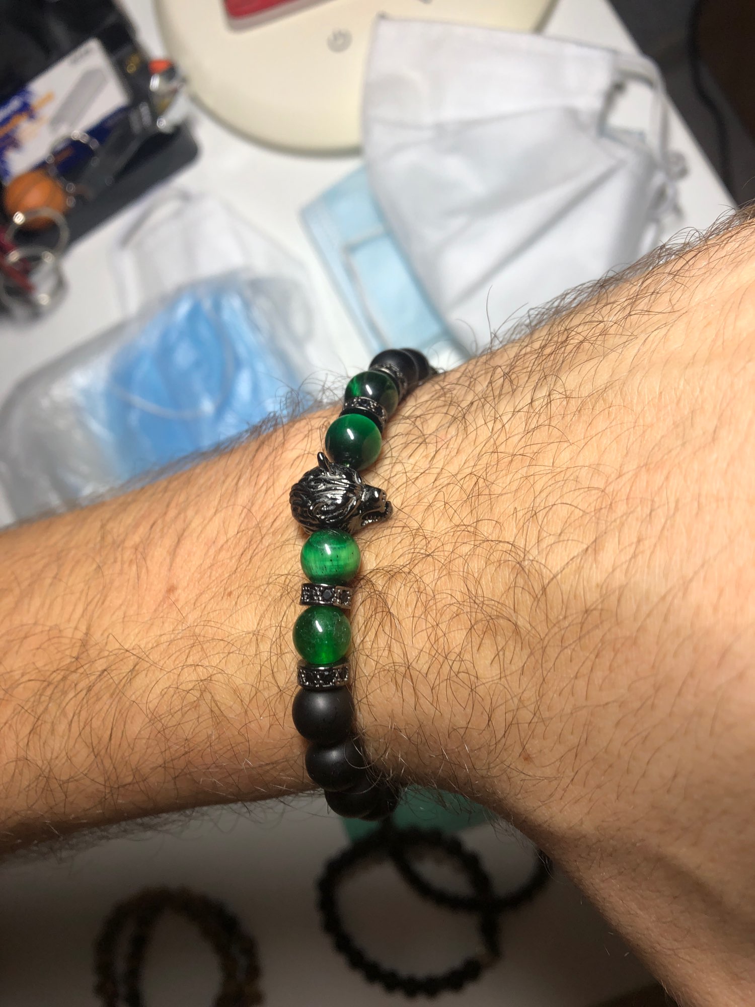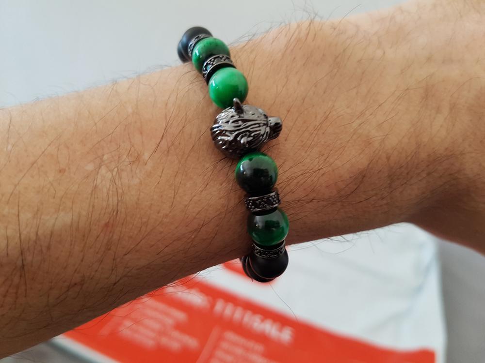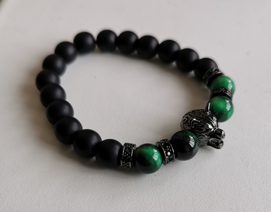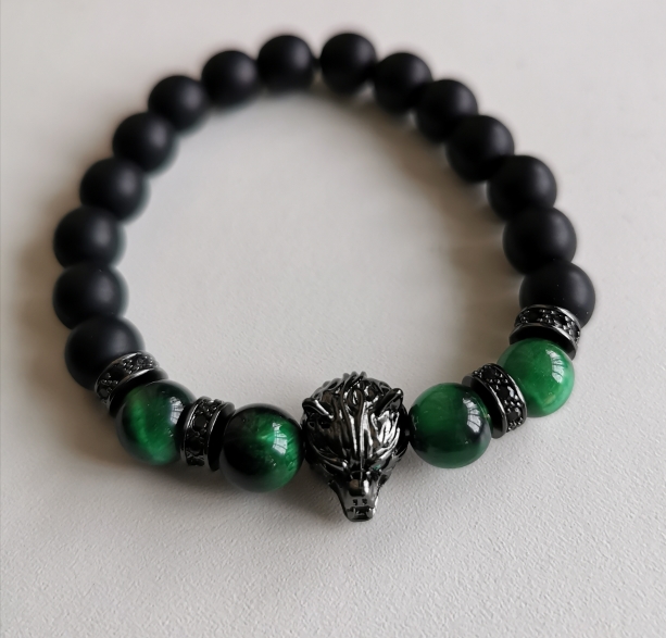 Are you looking for a special bracelet? Introduce to you our Wolf charm bracelet, it is also a talisman of good luck. Featuring in tiger eye stone and finished by a stainless-steel wolf heads clasp, this wolf head beaded bracelet perfectly captures the spirit of the wolf. The wolf is symbolized as a sign of courage and strength, wolf jewelry is beloved by people worldwide. It has three types of stones: Aquamarine, Turquoise and, Lapis Lazuli. Aquamarine is a stone of the sea, Turquoise is a calming stone for dissipating anger, Lapis Lazuli is a perfect stone to help you focus and solve difficult problems. The Wolf charm bracelet is suitable for all styles of wear, it will add charm to clothes. It’s the perfect gift for your friends and family. What are you looking for? Buy now!