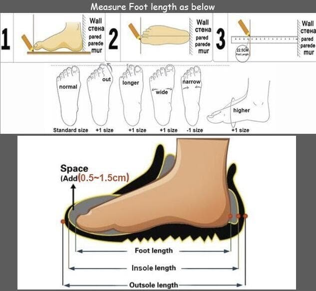 | Step 1 Please measure your foot length carefully. | ||||||||||