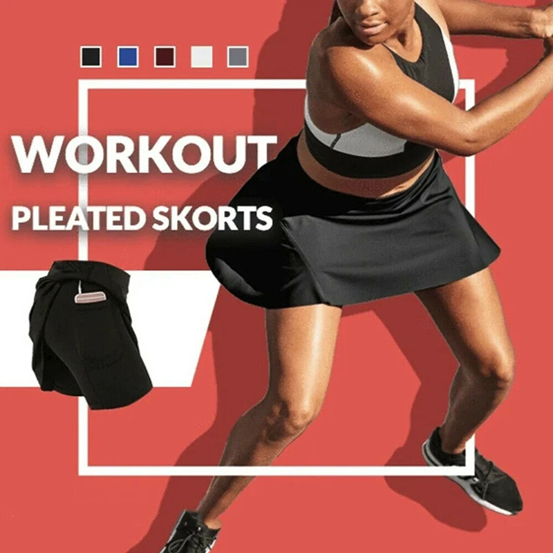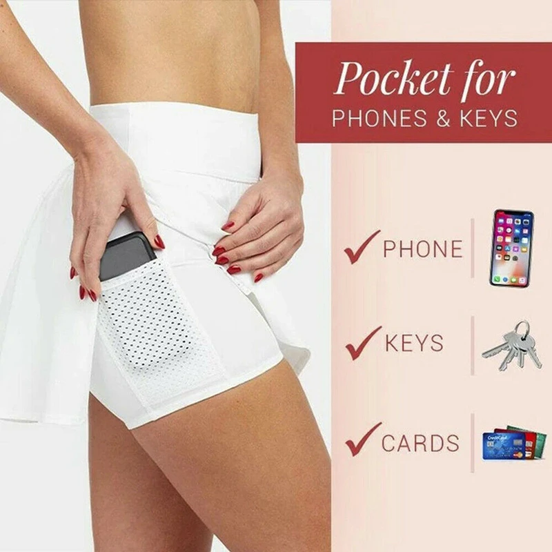 Listen, girls! This Workout Pleated Skorts is a necessity in your closet! The skorts are a mix of a skirt and a pair of shorts. It has the flexibility of skirts but the comfort of shorts! UV cut technology protects your skin from ultraviolet rays and helps to prevent sunburns. Inner side thigh pockets for your other essentials like smartphones, keys, credit cards, and even more. The buttery soft fabric feels comfortable as soon as you put it on!