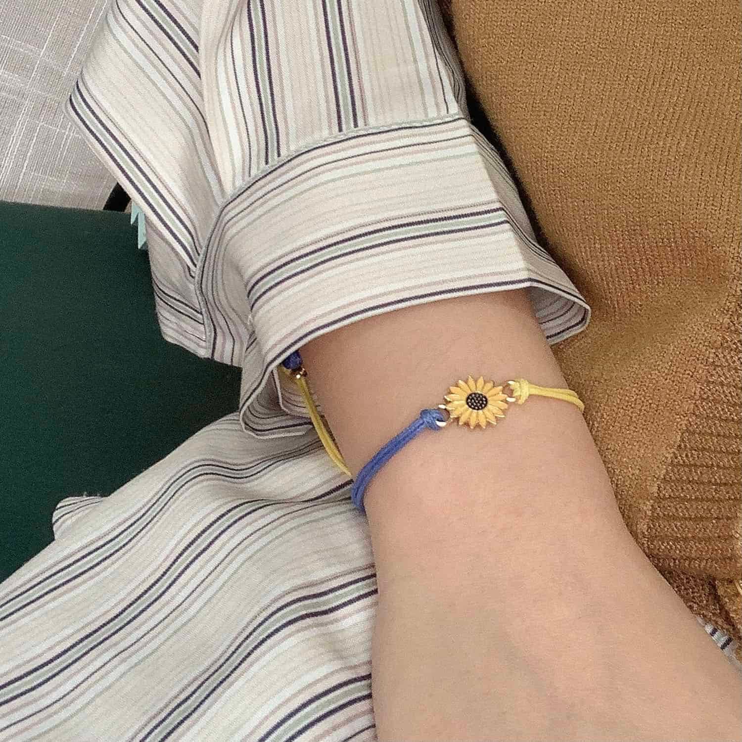 Are you looking for a simple yet sophisticated bracelet? Let’s choose our Woven sunflower bracelet. The product is made of eco-friendly, and recycled materials, the bracelet is also nickel-free, lead-free, cadmium-free, and hypoallergenic. It is waterproof strings, has unique design with dainty sunflower and cute beads. In particular, this bracelet is buckled with the same rope used to make the ring, so you can comfortably adjust the size to fit any wrist. The sunflower is beautiful, and it is also a symbol of faithfulness, longevity. It has a very noble meaning, represents love, friendship, divine affection between people, is a perfect gift for the people you love. Order now!