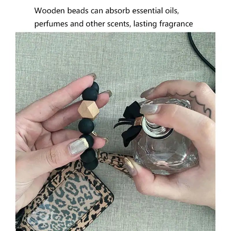 13 round beads are made of BPA-free and food grade silicone; 1 hexagonal bead is made of natural wood; the Card Wallet and tassels are made of durable PU leather.